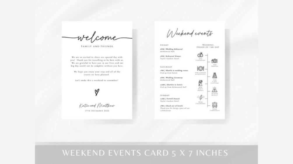 Wedding weekend events card 5x7inches